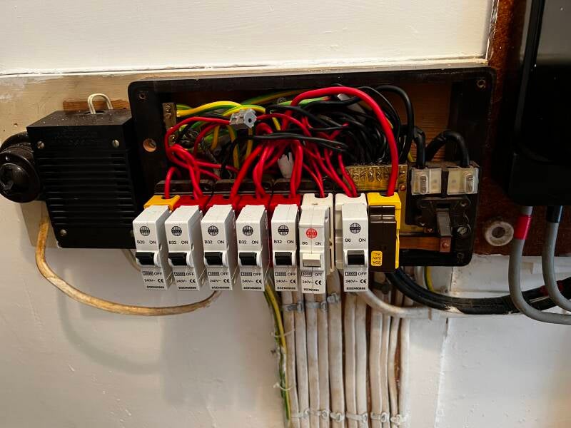 BEFORE, Old wooden fuse board, with plug in mcbs